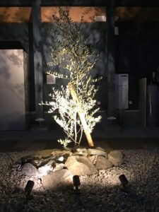 昼とは違った夜のお庭を演出できるよう、それぞれ角度を変えています